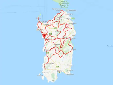 - Alghero – Nuoro – Bitti – Monti – Capo D’orso, žulový blok vysoký 122 m, vymodelovaný větrem a erozí do tvaru mohutného zvířete připomínajícího medvěda – Costa Paradiso – Isola Rossa – Perfugas – Thesi – Alghero